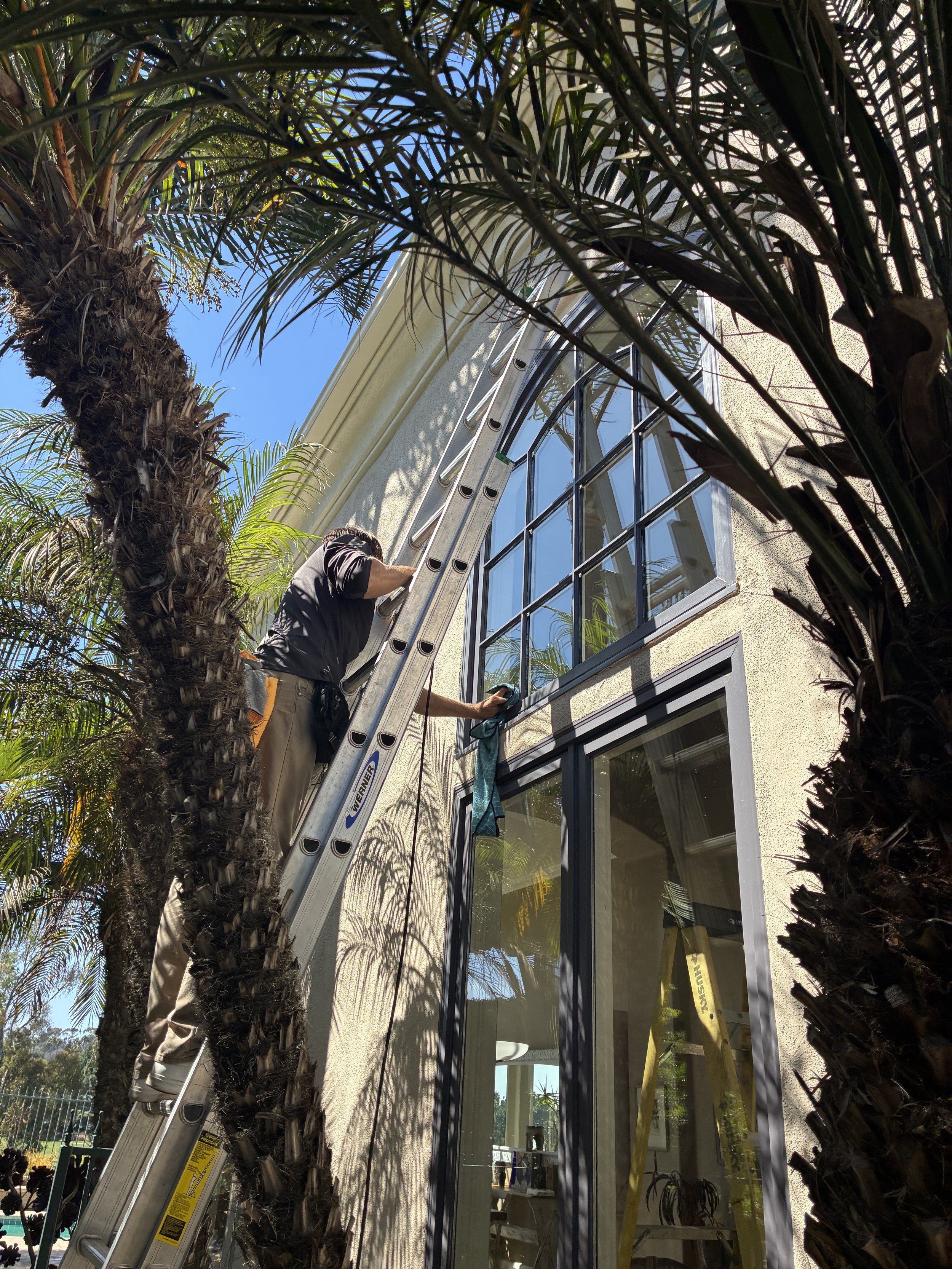 Most San Diego homes do well with professional window cleaning 2–4 times per year. Coastal areas like La Jolla, Del Mar, and Pacific Beach often need more frequent cleanings because of salt, moisture, and wind. If you’re inland or away from traffic, twice a year is usually enough to keep glass clear and protect it from mineral buildup.